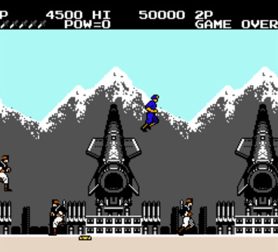 绿色兵团 空中飞人版是一款由日本KONAMI(科乐美)公司推出的任天堂FC红白机游戏,发行日期为1987年4月10日。与魂斗罗、赤色要塞、沙罗曼蛇并誉为“四强”,风靡整个八十年代,为诸多80后玩家们所津津乐道。对于初上手的玩家来讲,这个游戏的难度偏大。游戏的背景设定在冷战时期,玩家扮演一名特种兵,目标是穿越敌人防线,通过六个关卡,最终炸毁敌方的核武器装置。玩家在游戏中使用的主要武器是一把刺刀,可以与敌人进行近战。游戏的核心玩法包括战斗、潜行和解谜,玩家需要在不同的关卡中利用各种策略和技巧来击败敌人。关卡设计包括雪地、军事基地和丛林等,每个关卡都有其独特的敌人和挑战!