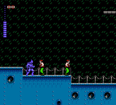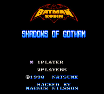 赤影战士 蝙蝠侠与罗兵版是NATSUME公司在红白机时代推出了一款横版过关游戏。游戏讲述了在未来美国废土,蓝衣忍者Hayate(疾风)与红衣忍者Kaede(枫)联合击败邪恶加尔达王的故事。本作把主角变成了蝙蝠侠与罗兵,啊,这......就非常NB!