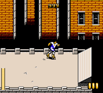 暴力溜冰 加强版是一款稍微冷门的FC游戏,1990年Konami开发,不过并未发行日版,改编自1989年开播的一档集轮滑和格斗于一身的电视竞技节目,D版给游戏张冠李戴了《DJ-Boy》(KANEKO的街机游戏)的名字 ,虽然两者题材相似。游戏融合了跑酷和打斗的玩法,一路上要面对复杂的路况并与敌人周旋,移动时惯性很大,要控制好不是易事,作为后期FC游戏,游戏角色和场景的细节刻画细致,不过当角色重叠时,角色部分精灵会丢失,算是美中不足!游戏有三个主角可供选择,手感不错,但难度较大,控制不好的话,很容易就掉落而死。